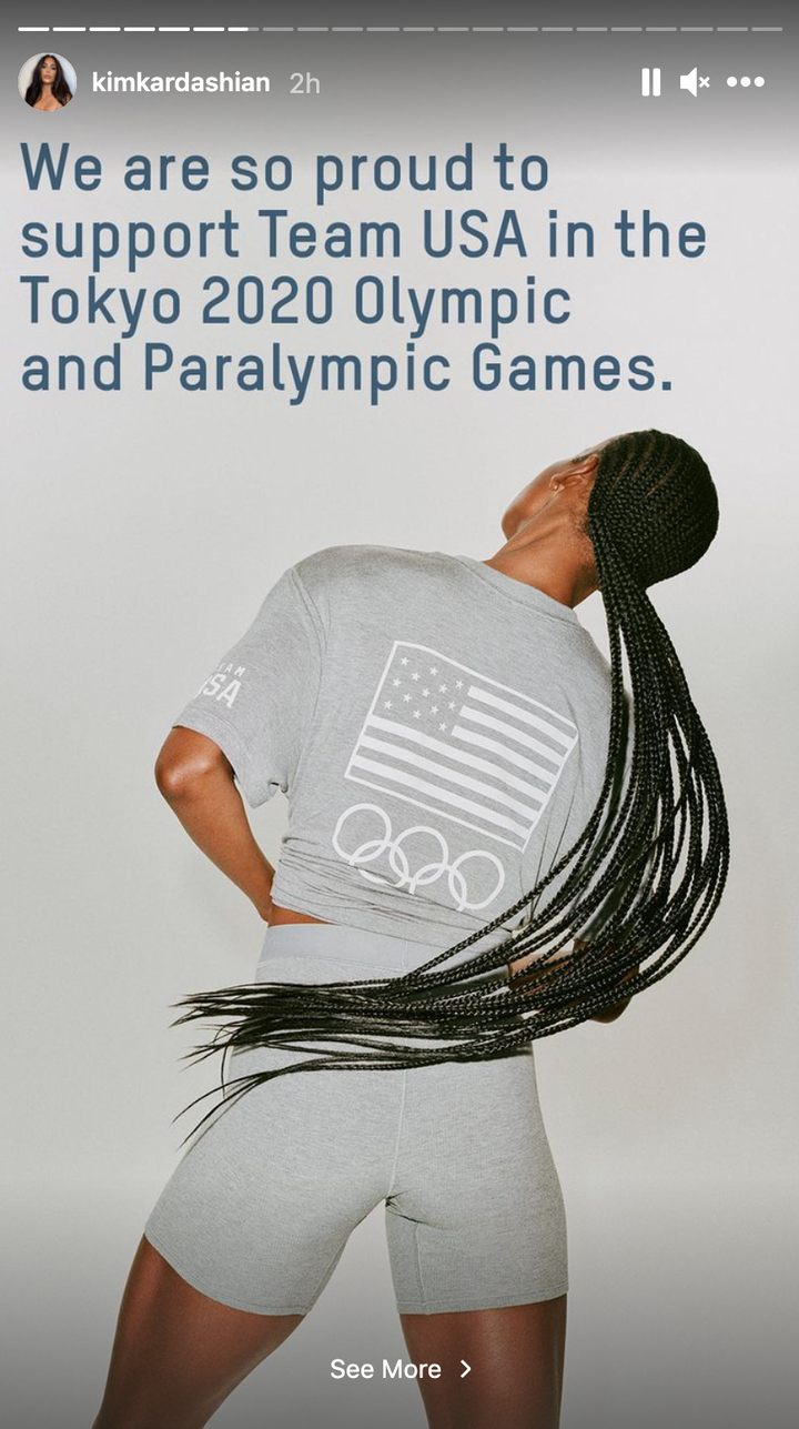 She went on to say that when she “received the call inviting Skims to be a part of @TeamUSA, every moment I’ve spent admiring the strength and energy of the Olympians from the sidelines came full circle.”